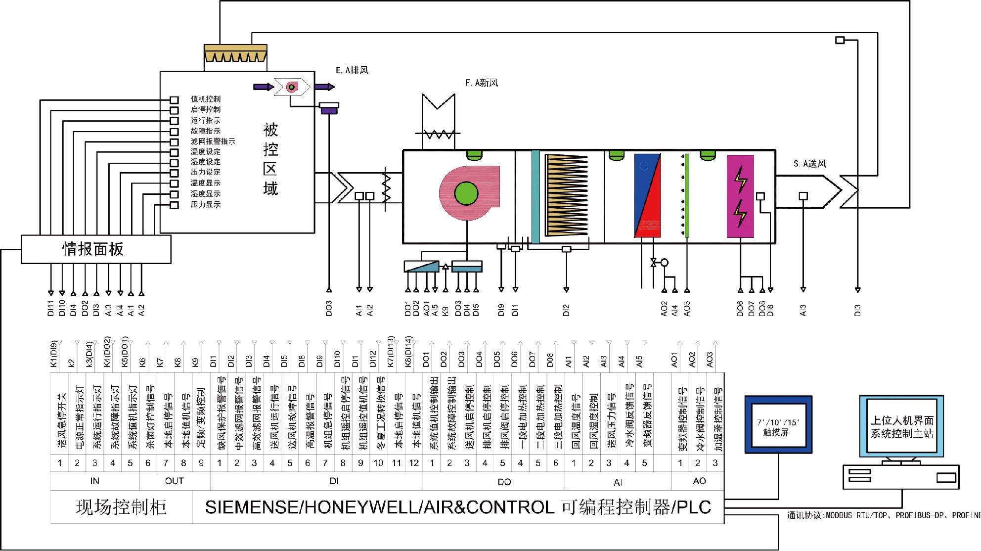 *送風機啟停、值班控制; *電加熱高溫保護報警;